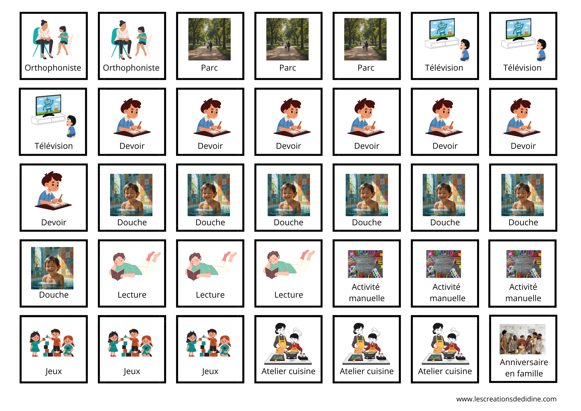 Ce semainier permet d’aider les enfants à se repérer tout au long de la semaine et de savoir ce qu’ils vont faire tel jour et à quel moment de la journée.